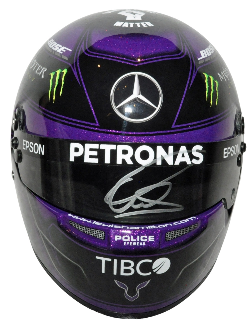 Lewis Hamilton Signed Replica 1/2 F1 2020 Purple Mercedes F1 Helmet