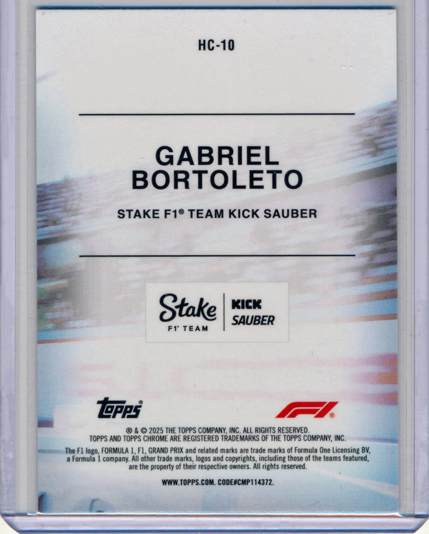 Regular price $29.95 USDGabriel Bortoleto 2025 Topps Chrome Formula 1 Sauber Helmet Collection Rookie RC HC-10 F1 Card.