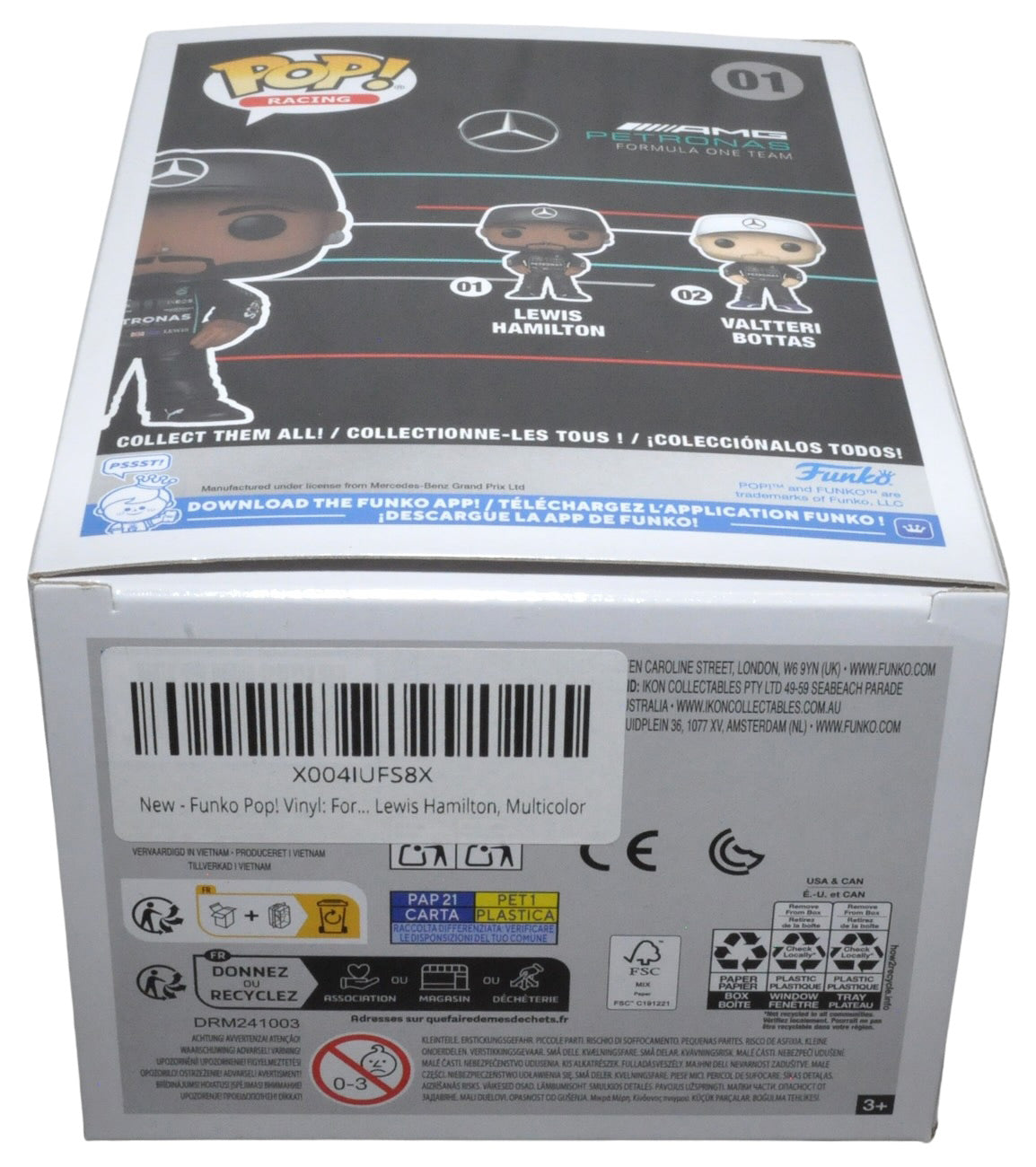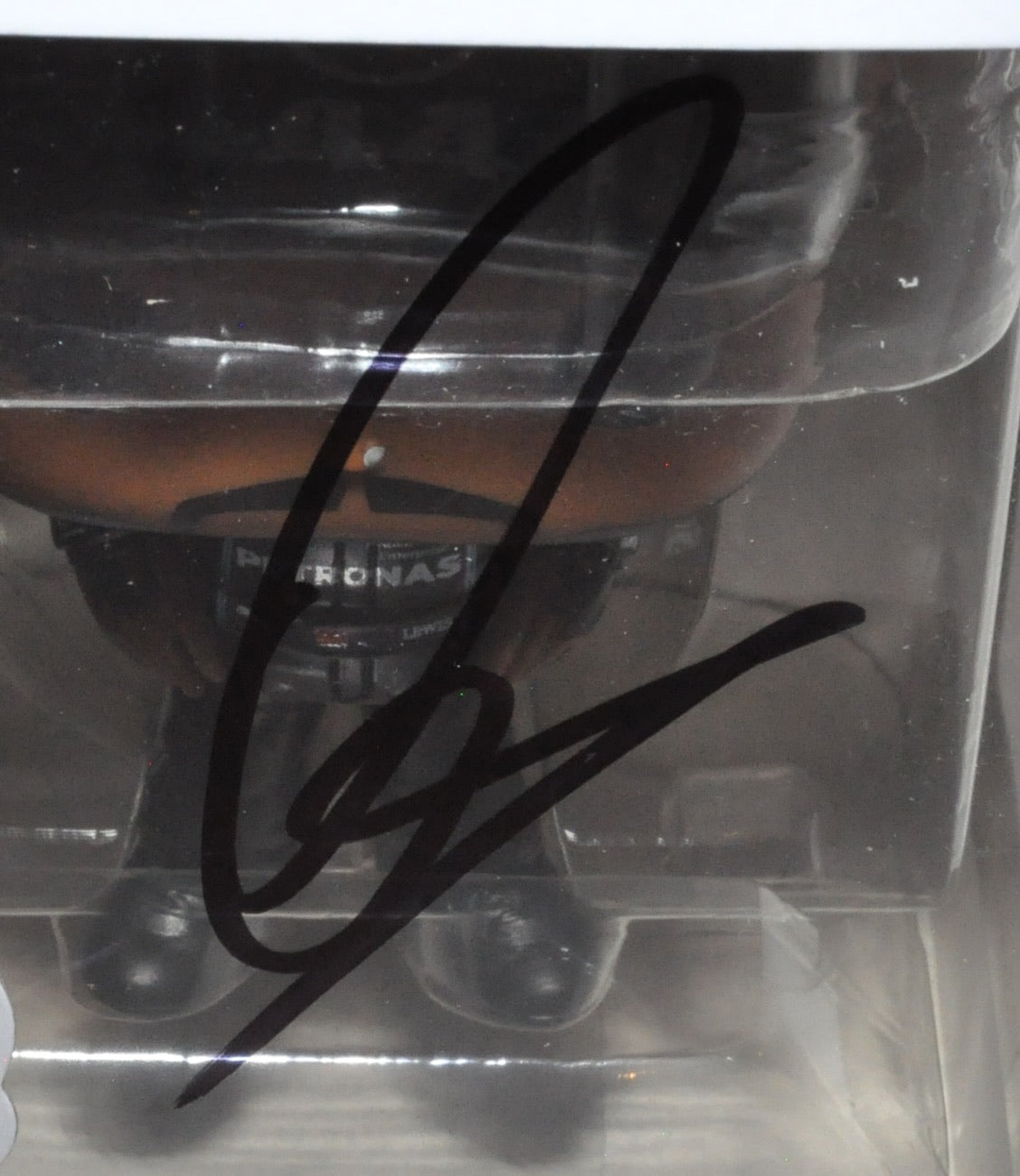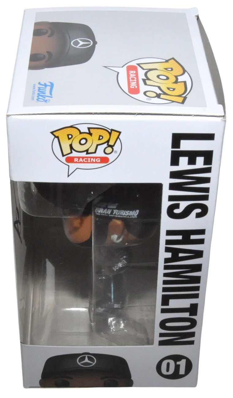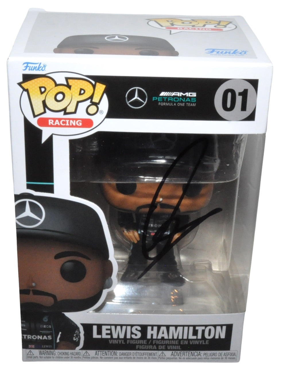 Lewis Hamilton Signed Funko Pop Mercedes AMG Petronas Formula One Team 01. Signed on the box. The Funko Pop box is approximately 3.5 inches deep x 4.5 inches wide x 6.25 inches tall.