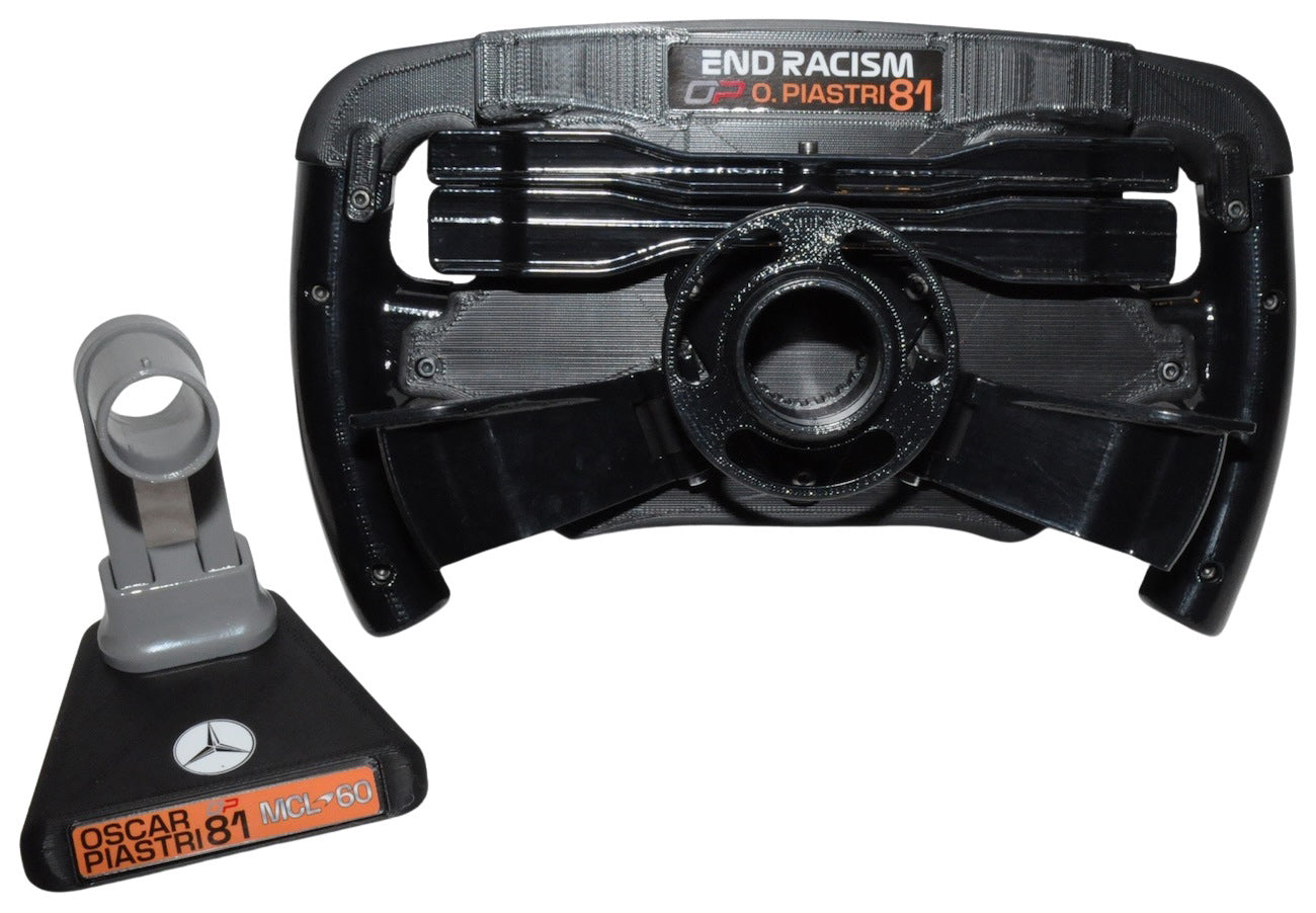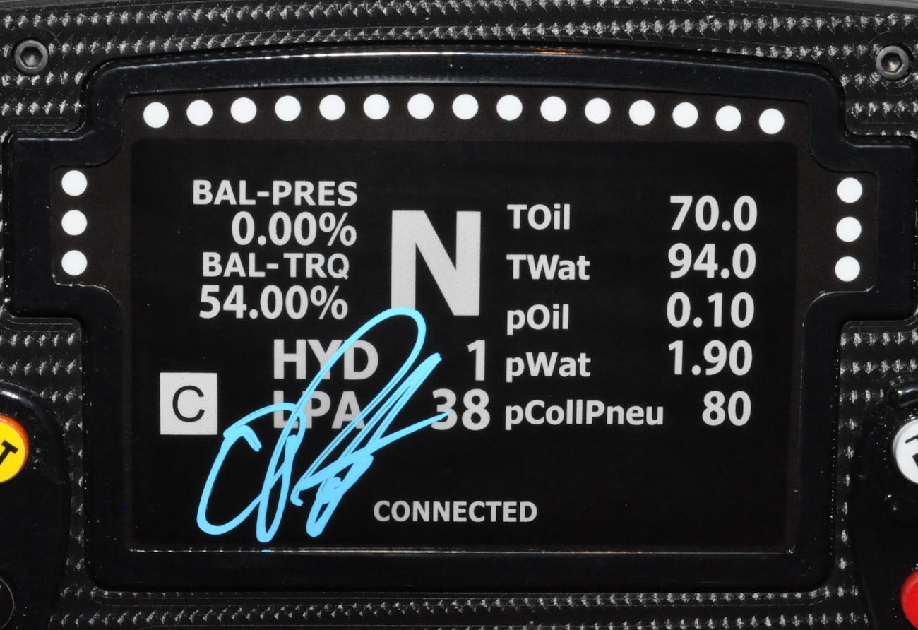 This is a full scale replica hand signed by Oscar Piastri. The feel of this replica steering wheel is great, the paddles are spring loaded. The knobs turn, and the switches click.